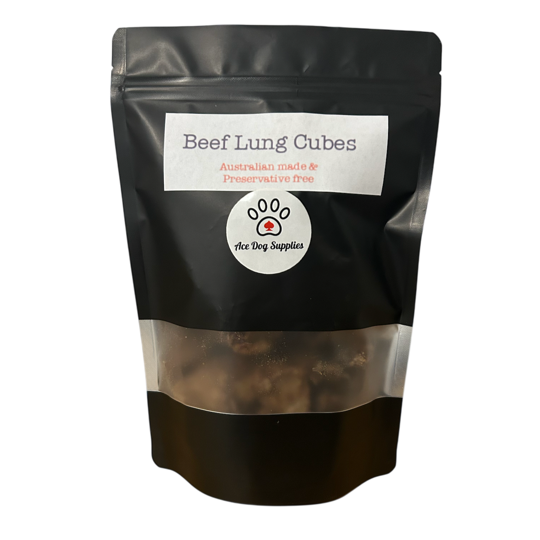 Dried beef lung cubes! Crisp, crunchy, light and airy nutritious treat.