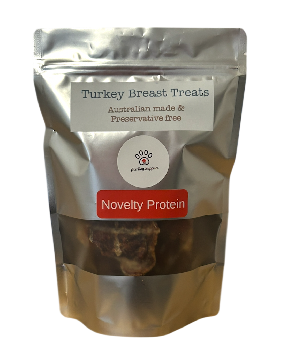 Our Turkey Breast Treats are made from locally sourced Australian turkey, sliced and slowly air-dried to preserve their natural flavour and nutritional goodness. The gentle drying process creates a tender, protein-rich chew that dogs of all ages can enjoy.